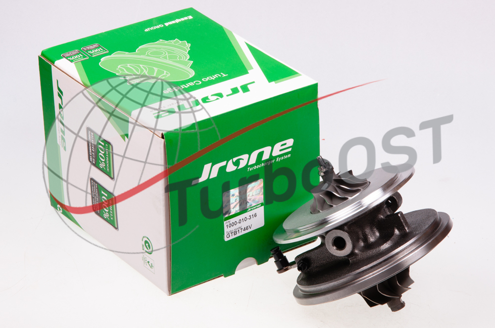 Картридж турбокомпрессора Jrone 1000-030-001 для автомобиля марки Ford модели Transit IV отбалансирован на заводе-изготовителе и готов к установке в турбину на двигатель модели AGA модификации 2.5L.